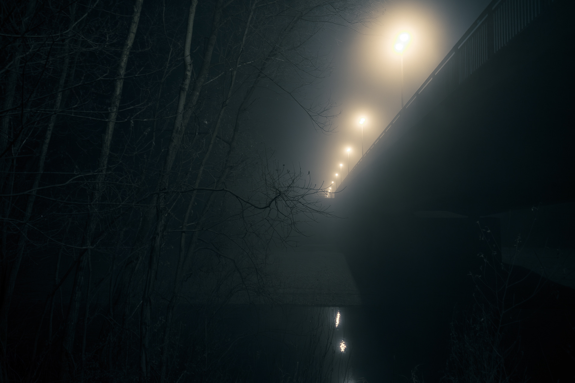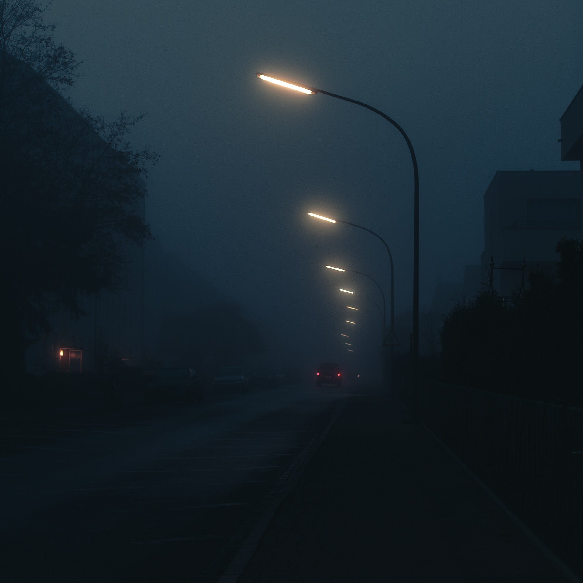Under the cover of heavy fog and darkness, the banality of the location dissolves. By isolating light sources and embracing the atmospheric haze, I aim to impose an epic narrative onto a landscape devoid of inherent significance. It is an avant-garde experiment in perception, exploring how mere staging can elevate the ordinary into the monumental.